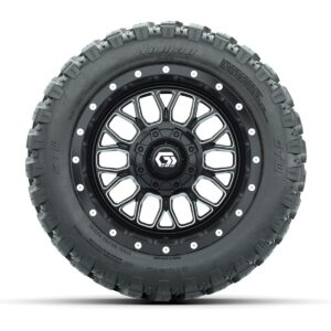 Set of (4) 12 in GTW® Helix Machined & Black Wheels with 22x11-R12 Nomad All-Terrain Tires