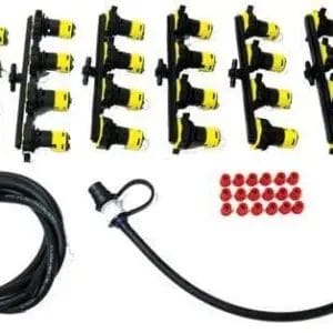 It’s a setup designed to fill all cells of your golf cart batteries from one point, making battery maintenance faster and easier. This keeps your batteries healthy by maintaining proper water levels and avoiding damage.