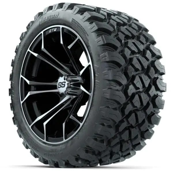 GTW Spyder Machined/Black 14 in Wheels with 23×10-14 GTW Nomad All-Terrain Tires – Full Set